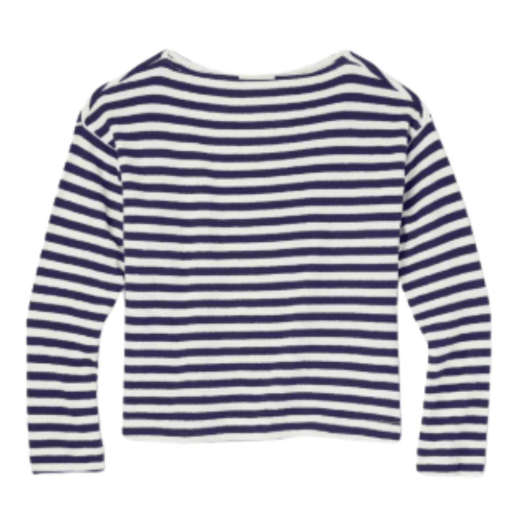 There is nothing more comfortable than a soft terry cotton long sleeve boat neck t-shirt. And the blue and white stripe scream summer! (PS it comes in red/white too.)